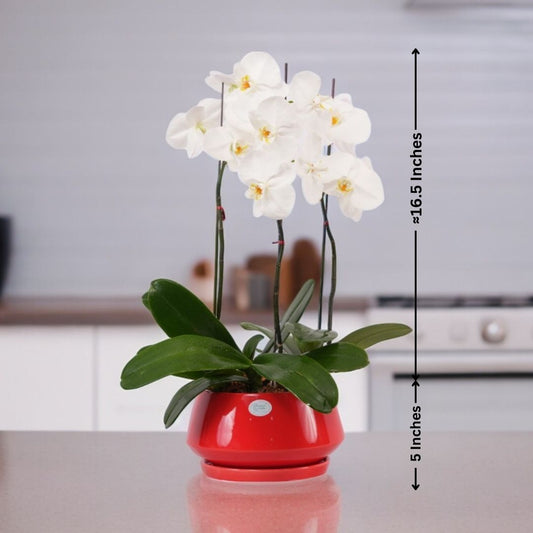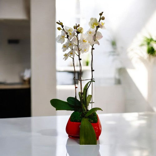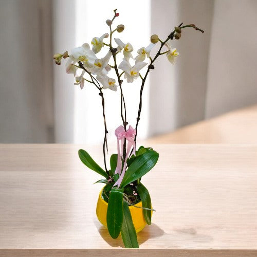 White Flowered Orchid with Designer planter